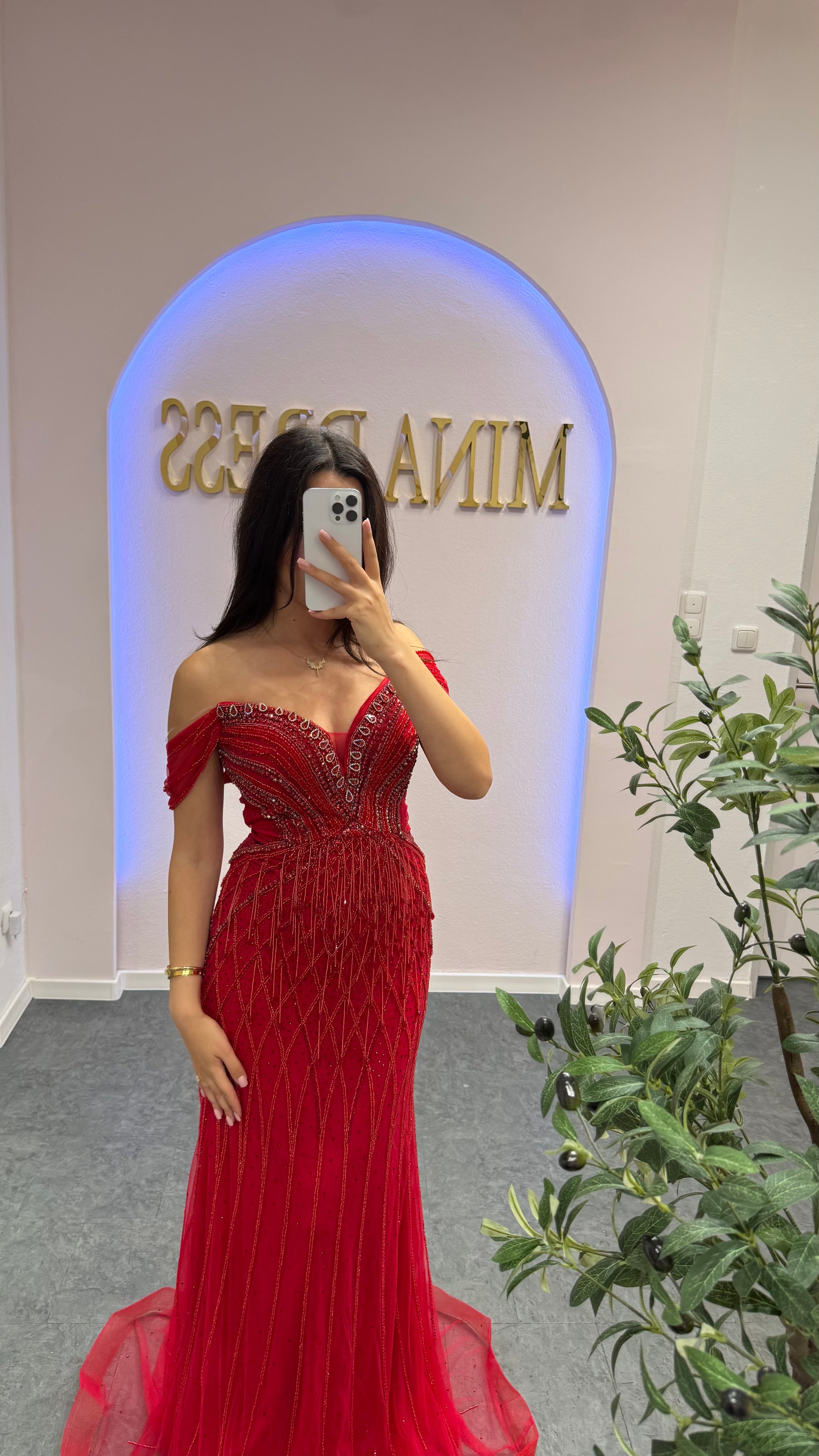 MinaRed steht für Ausdruck, Leidenschaft und elegante Stärke. Das kräftige Rot verleiht dem Kleid eine selbstbewusste, moderne Ausstrahlung und macht jeden Auftritt unvergesslich. Die feinen Details und der weich fließende Stoff sorgen dafür, dass das Kleid trotz seiner intensiven Farbe leicht, edel und harmonisch wirkt.